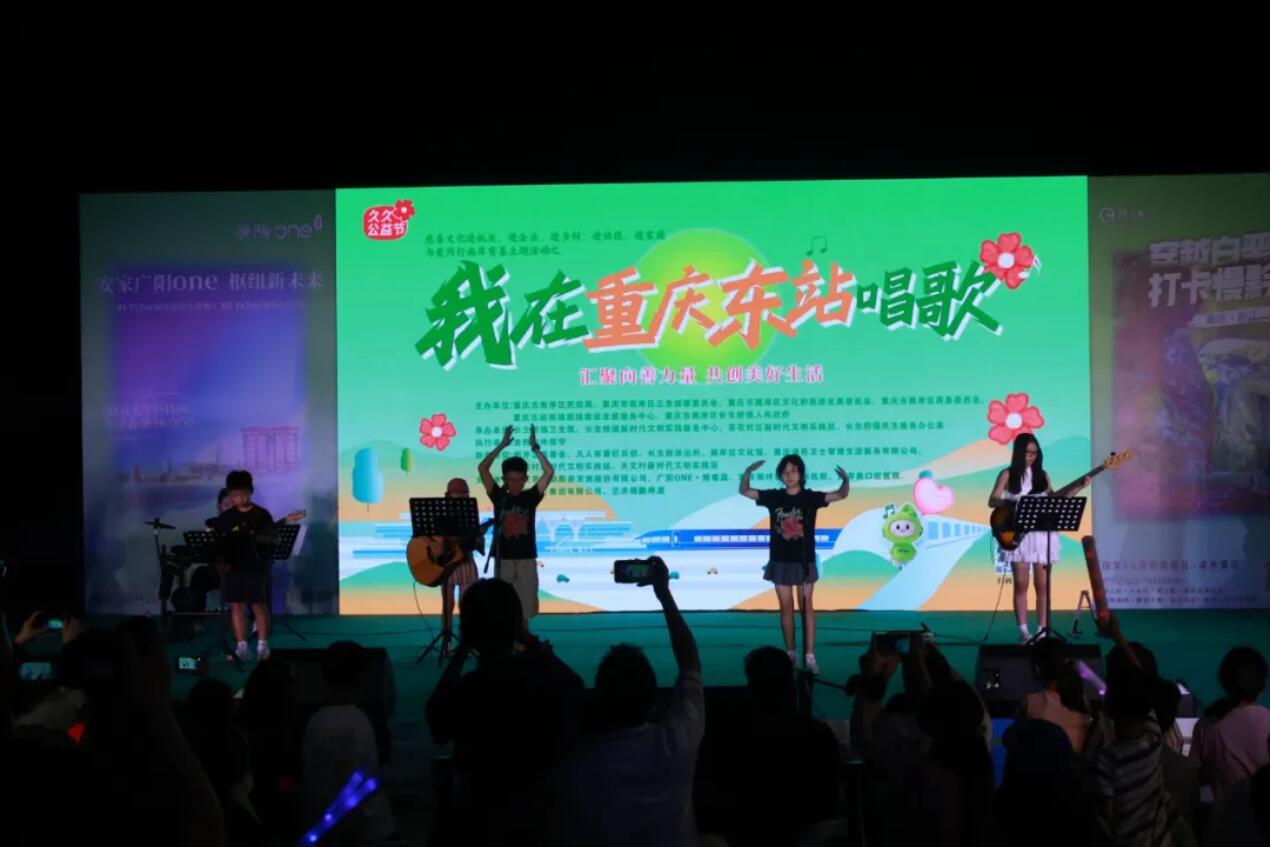 当晚,由南岸区民政局牵头,联合区卫生健康委、区慈善会等多部门共同主办的“与爱同行,南岸有善——我在重庆东站唱歌”主题活动正式启幕。