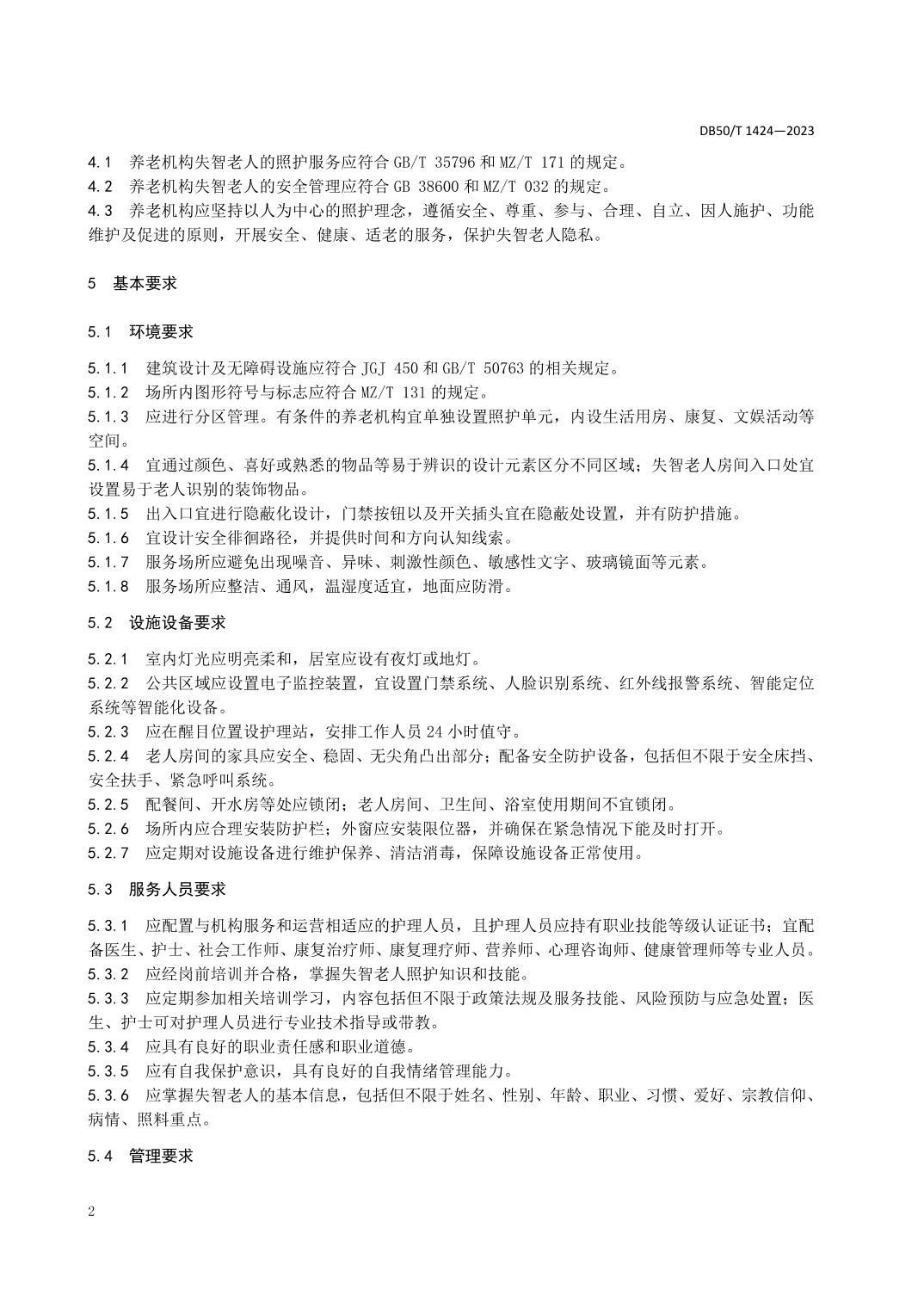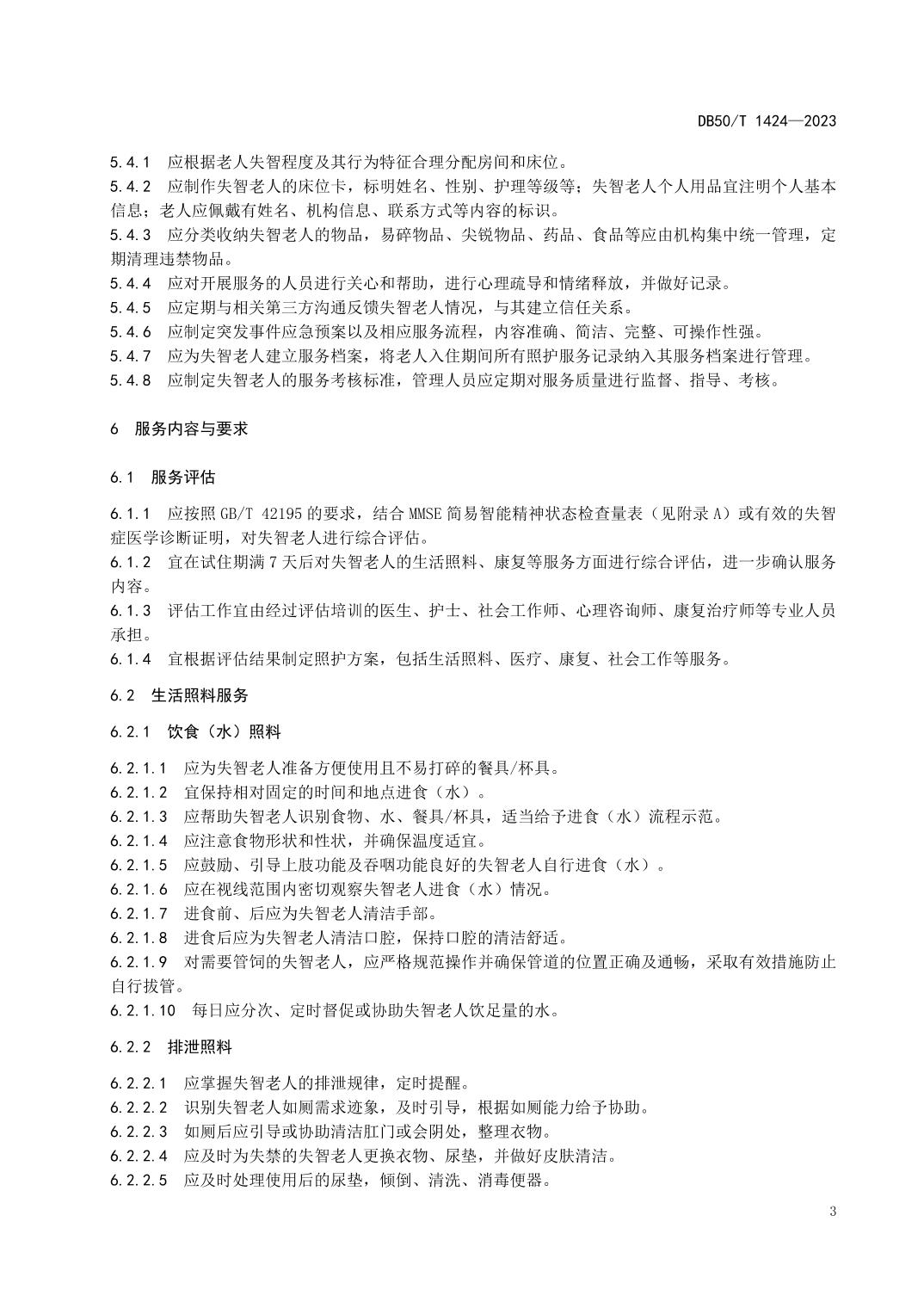 - DB50/T 1424-2023养老机构失智老人照护服务规范