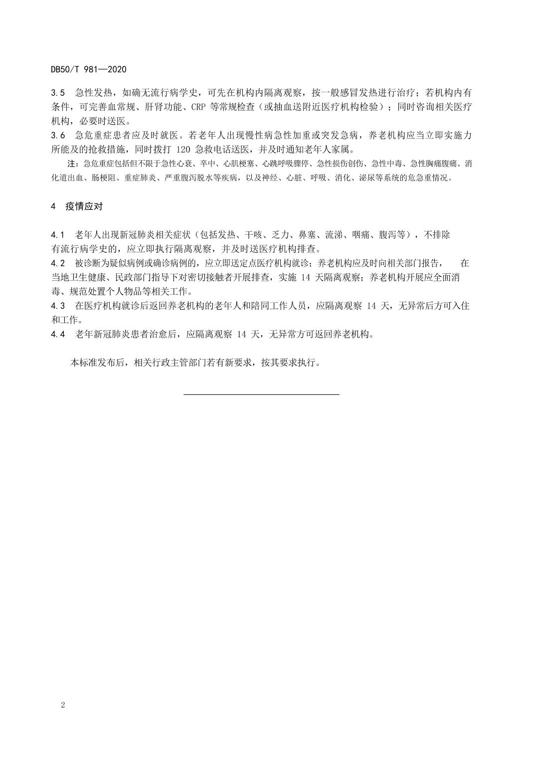 - DB 50/T 981-2020 养老机构新冠肺炎疫情防控技术指南