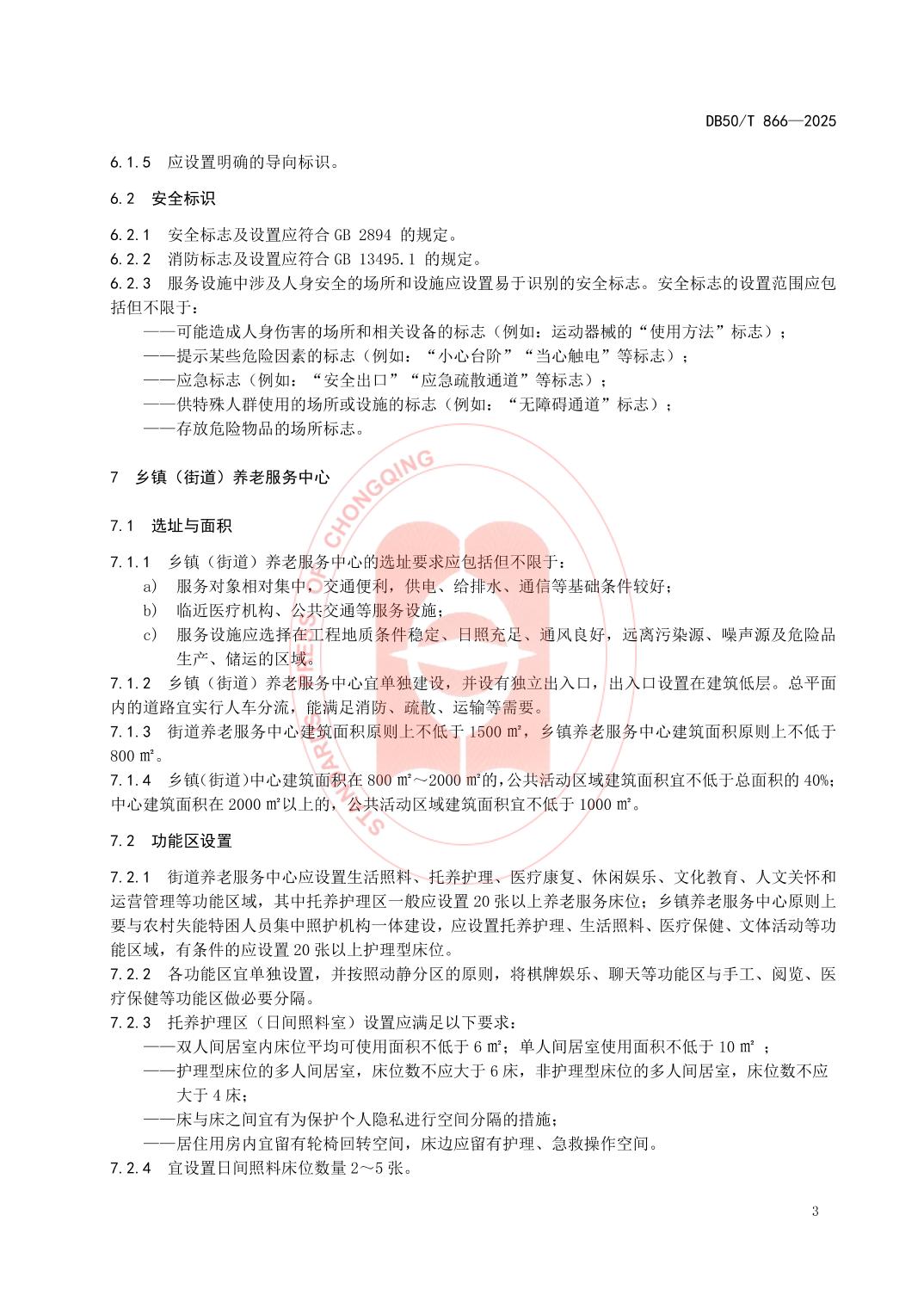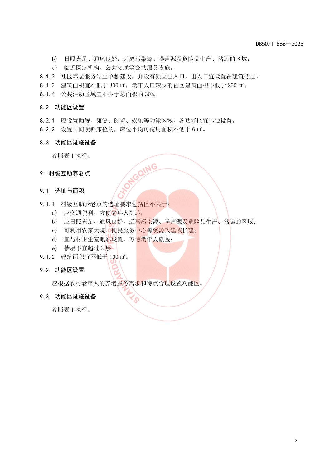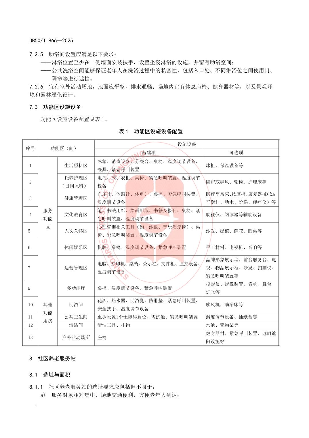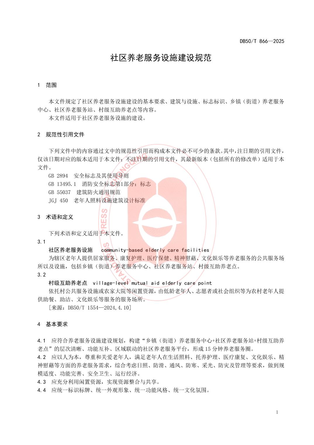 - DB50/T 866—2025 社区养老服务设施建设规范