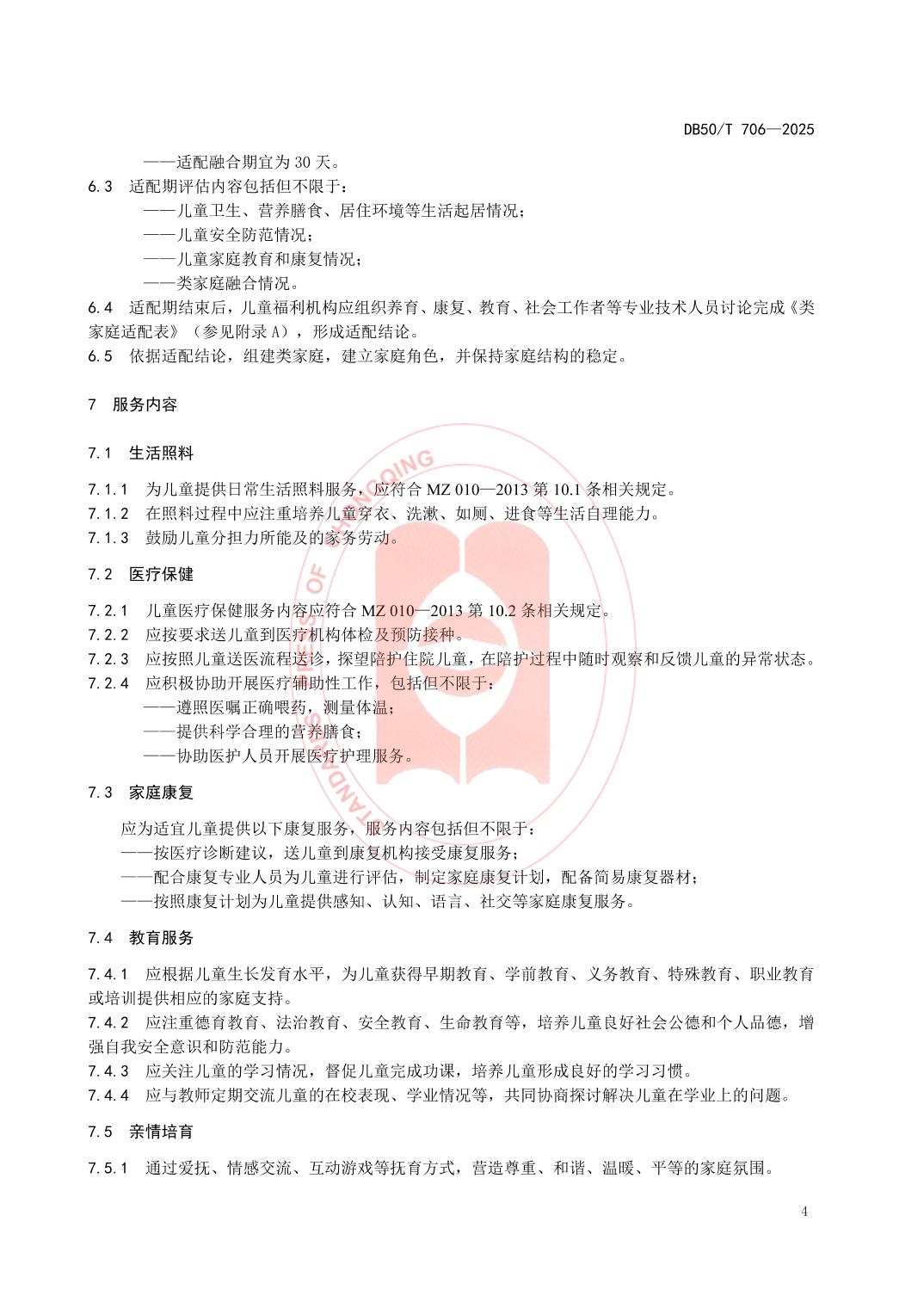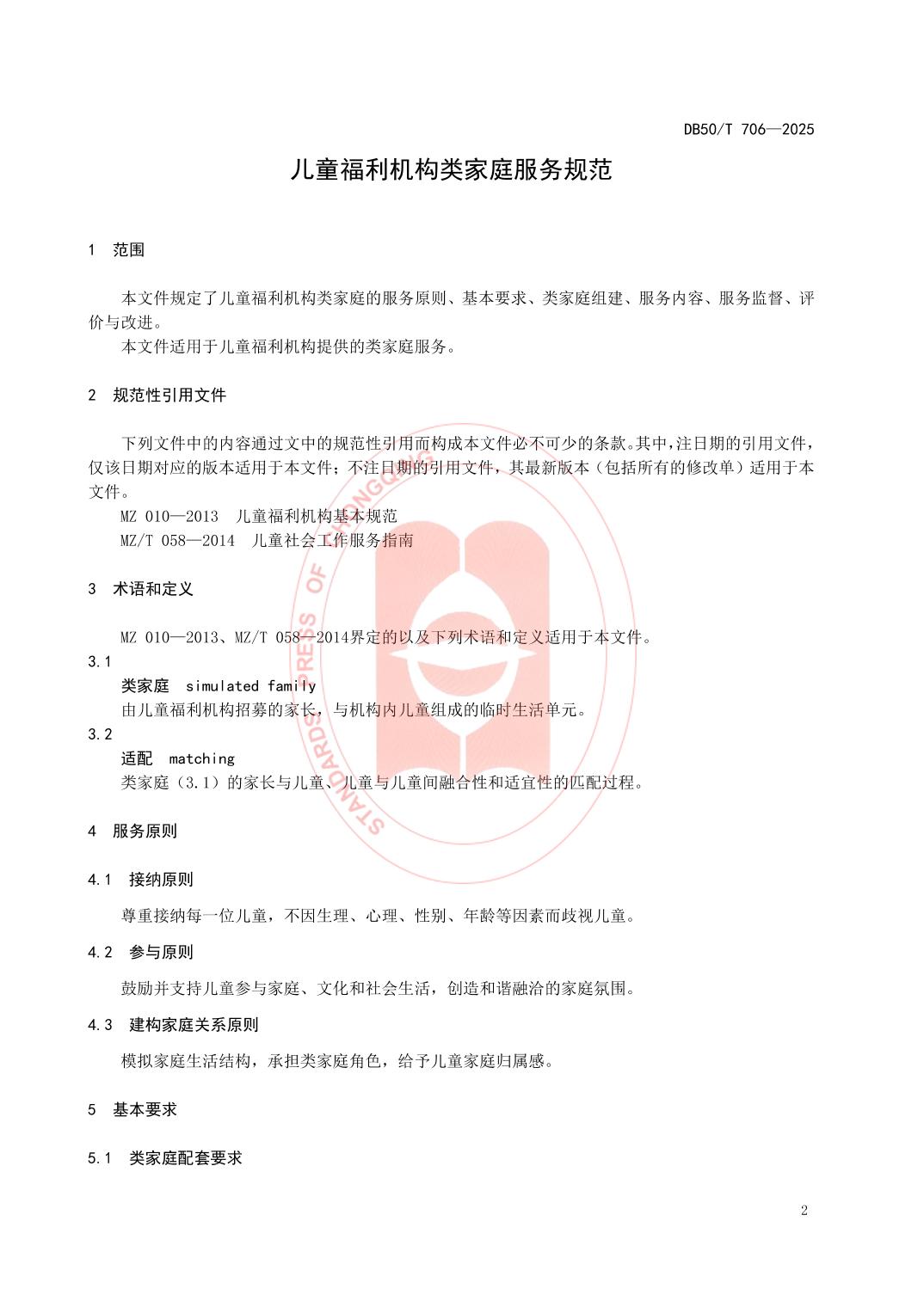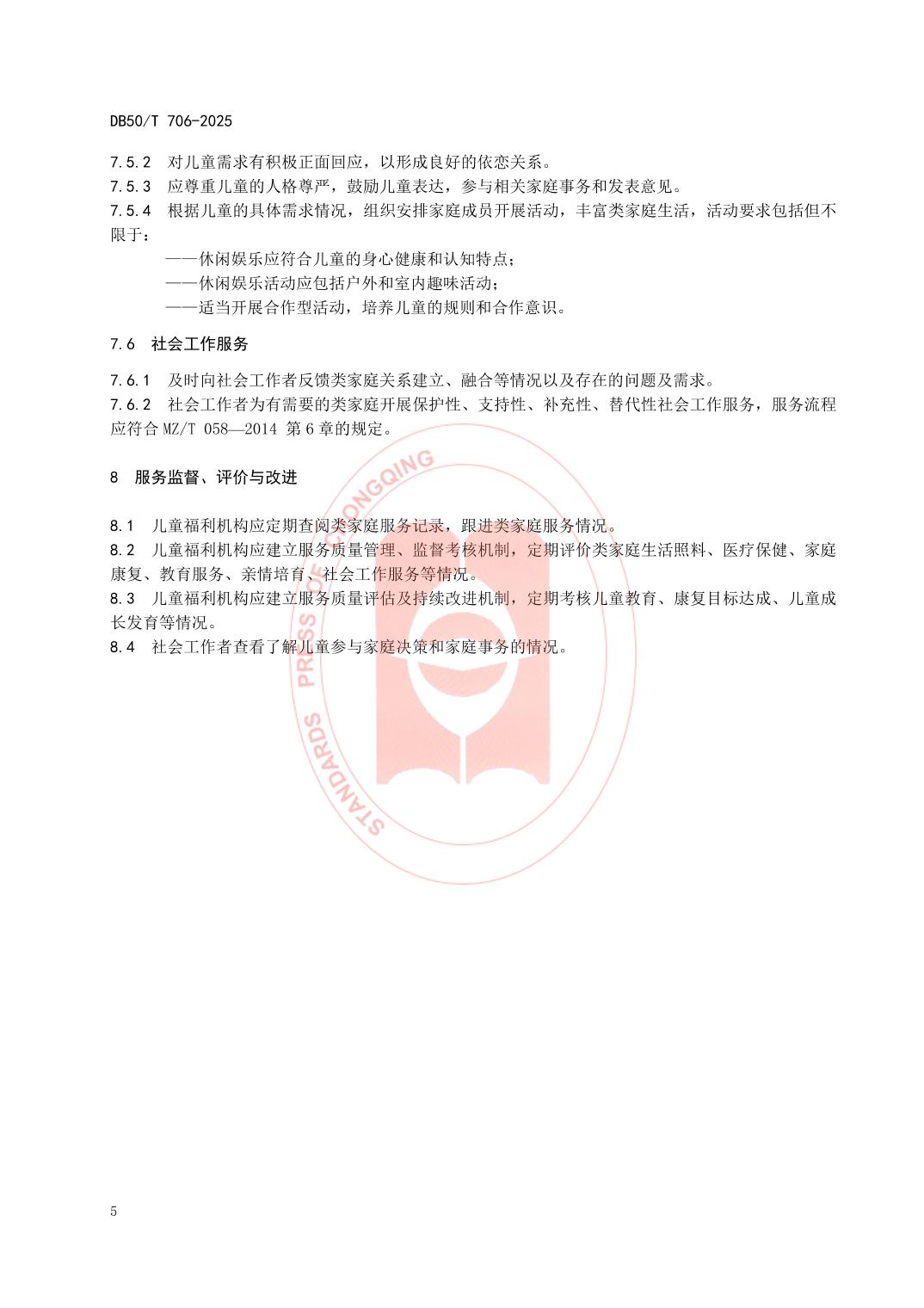 - DB50/T 706—2025 儿童福利机构类家庭服务规范
