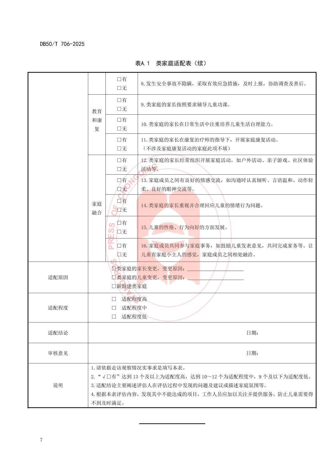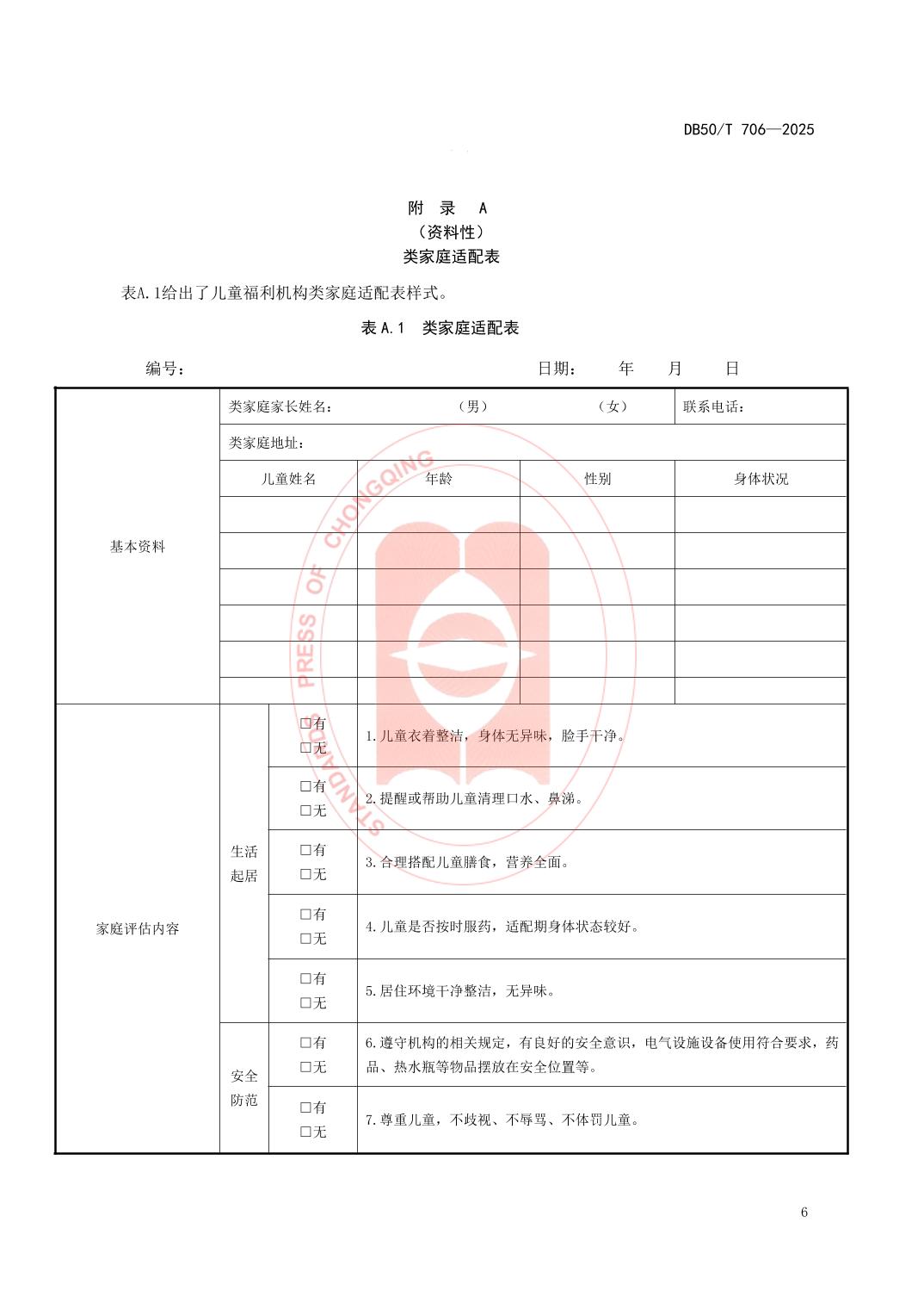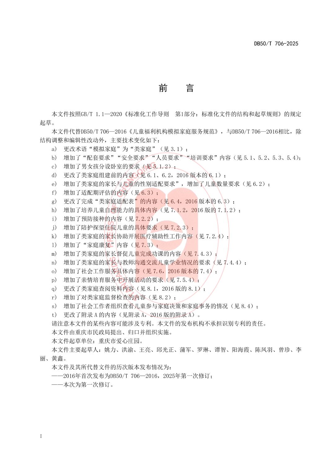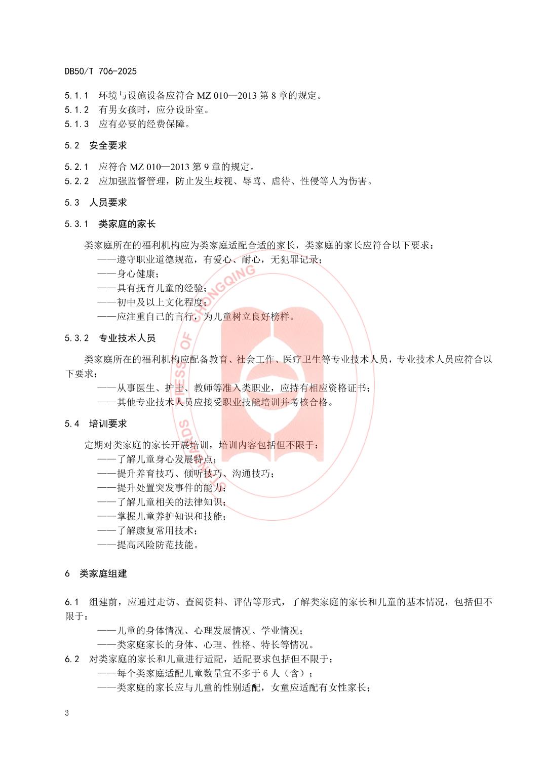 - DB50/T 706—2025 儿童福利机构类家庭服务规范