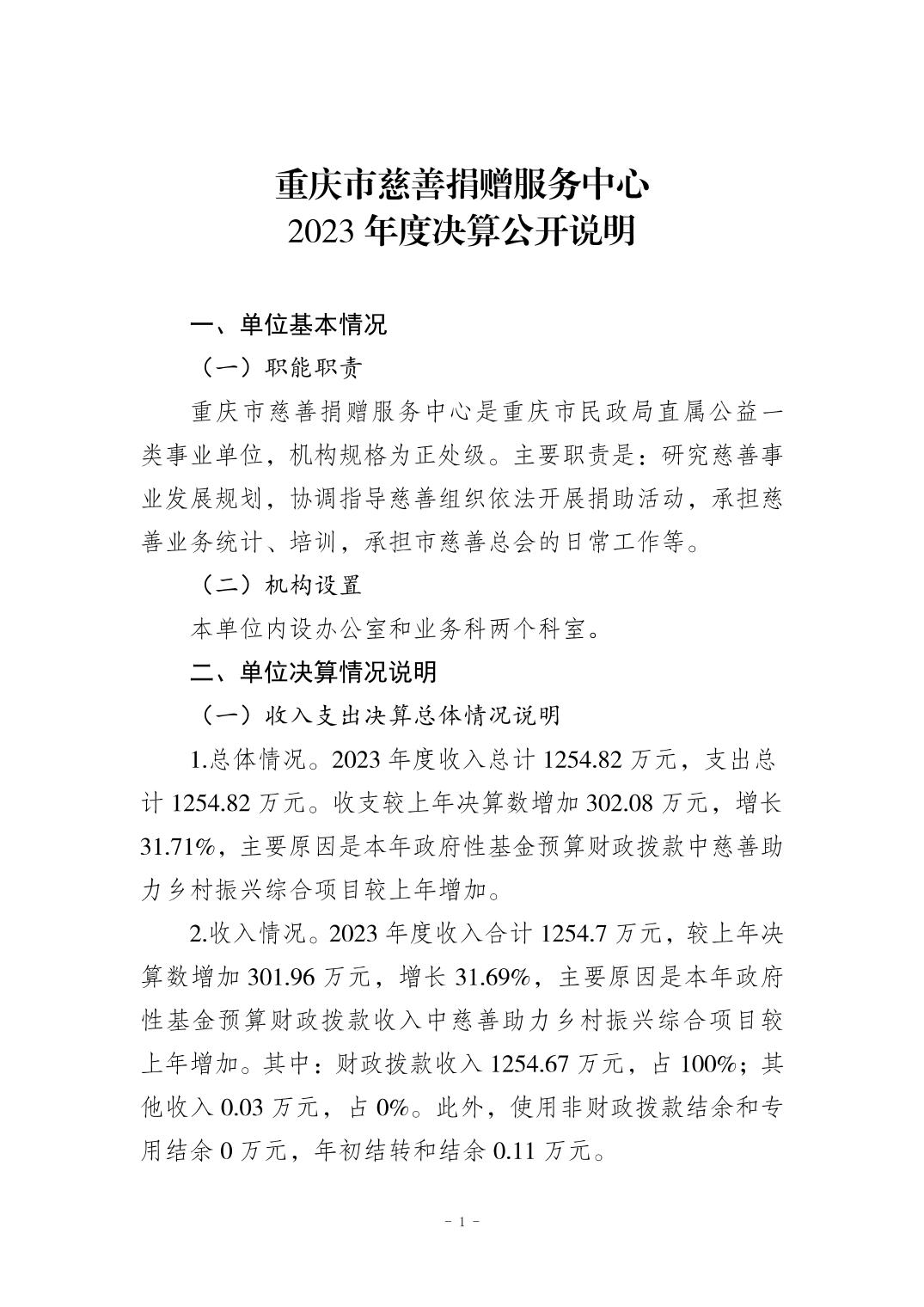 - 重庆市慈善捐赠服务中心2023年度决算公开说明
