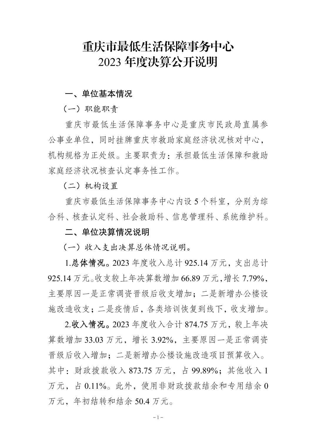 重庆市最低生活保障事务中心2023年度决算公开说明_金沙娱乐城app