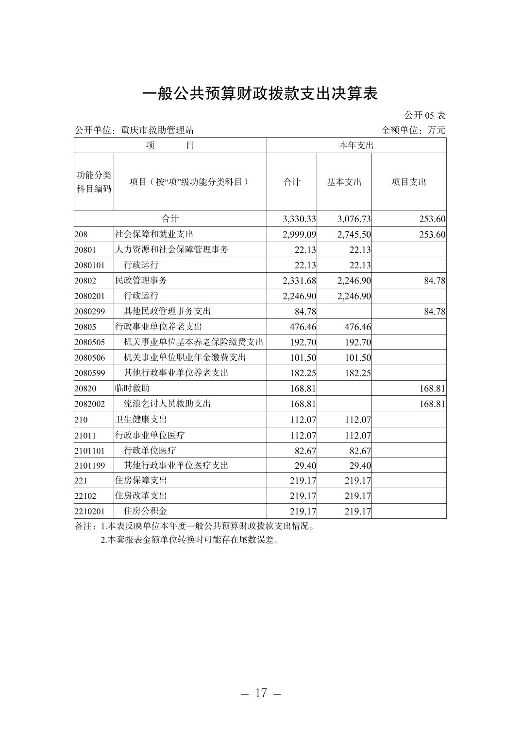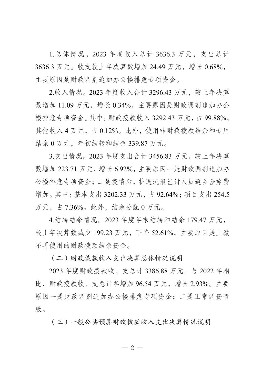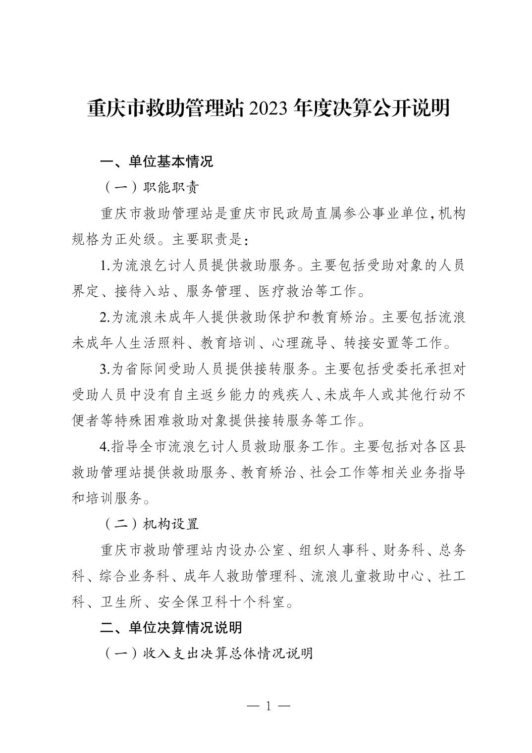 - 重庆市救助管理站2023年度决算公开说明