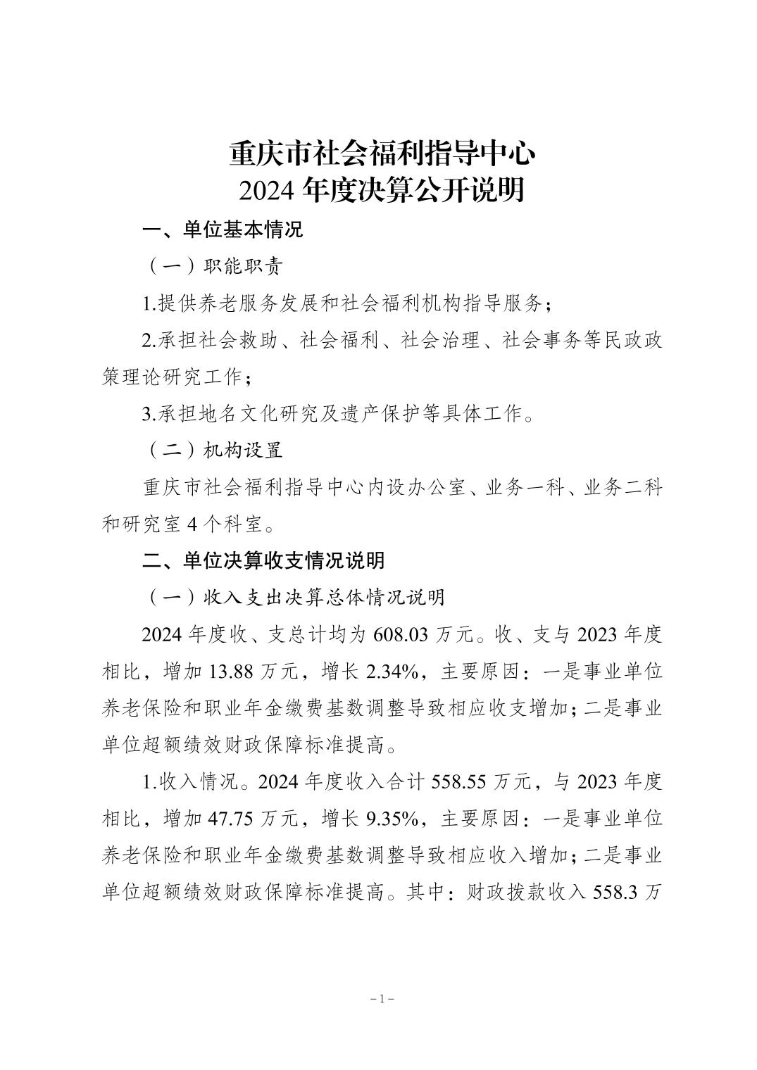 - 重庆市社会福利指导中心2024年决算公开说明