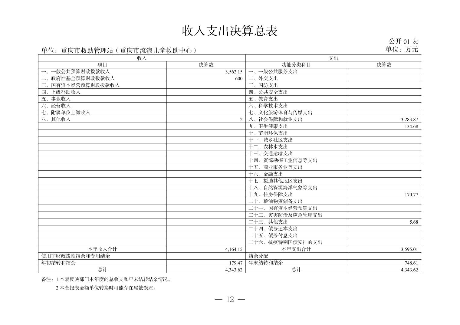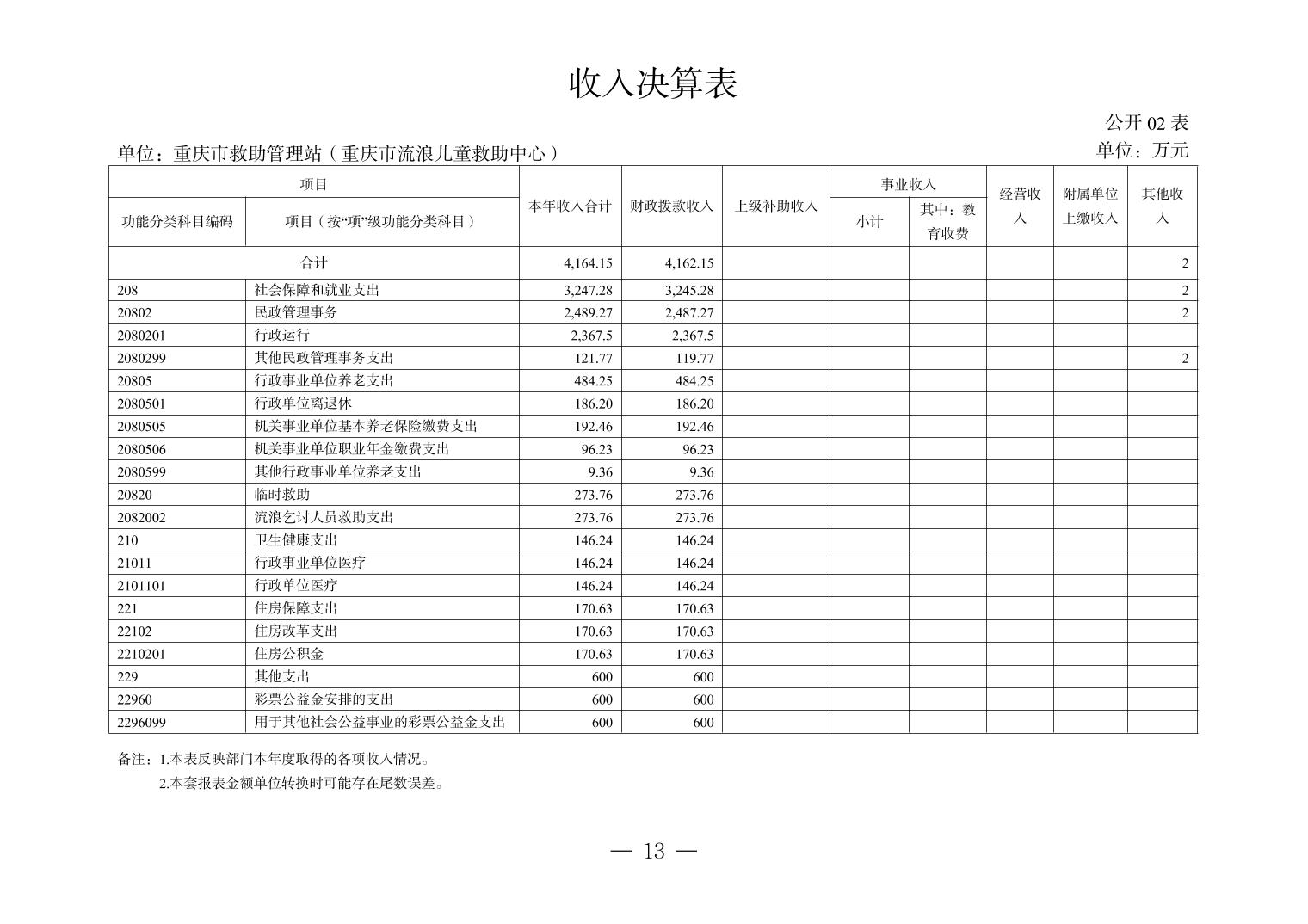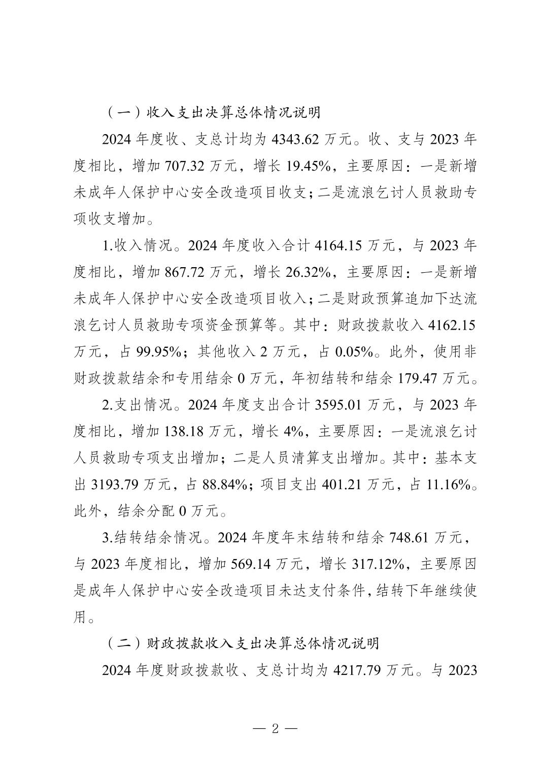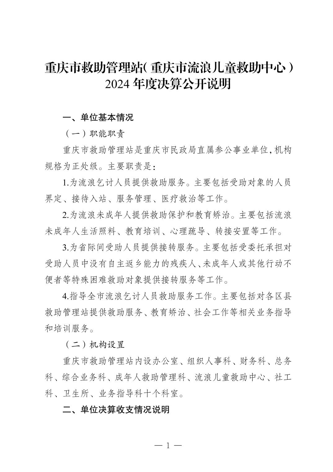 - 重庆市救助管理站(重庆市流浪儿童救助中心)2024年决算公开说明