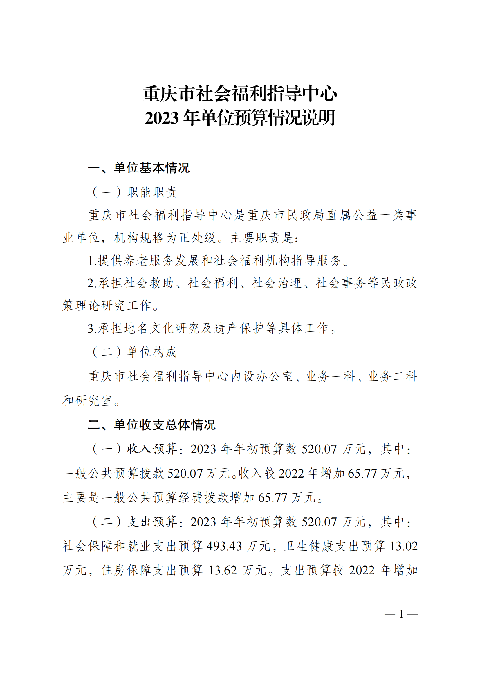 - 重庆市社会福利指导中心2023年单位预算情况说明