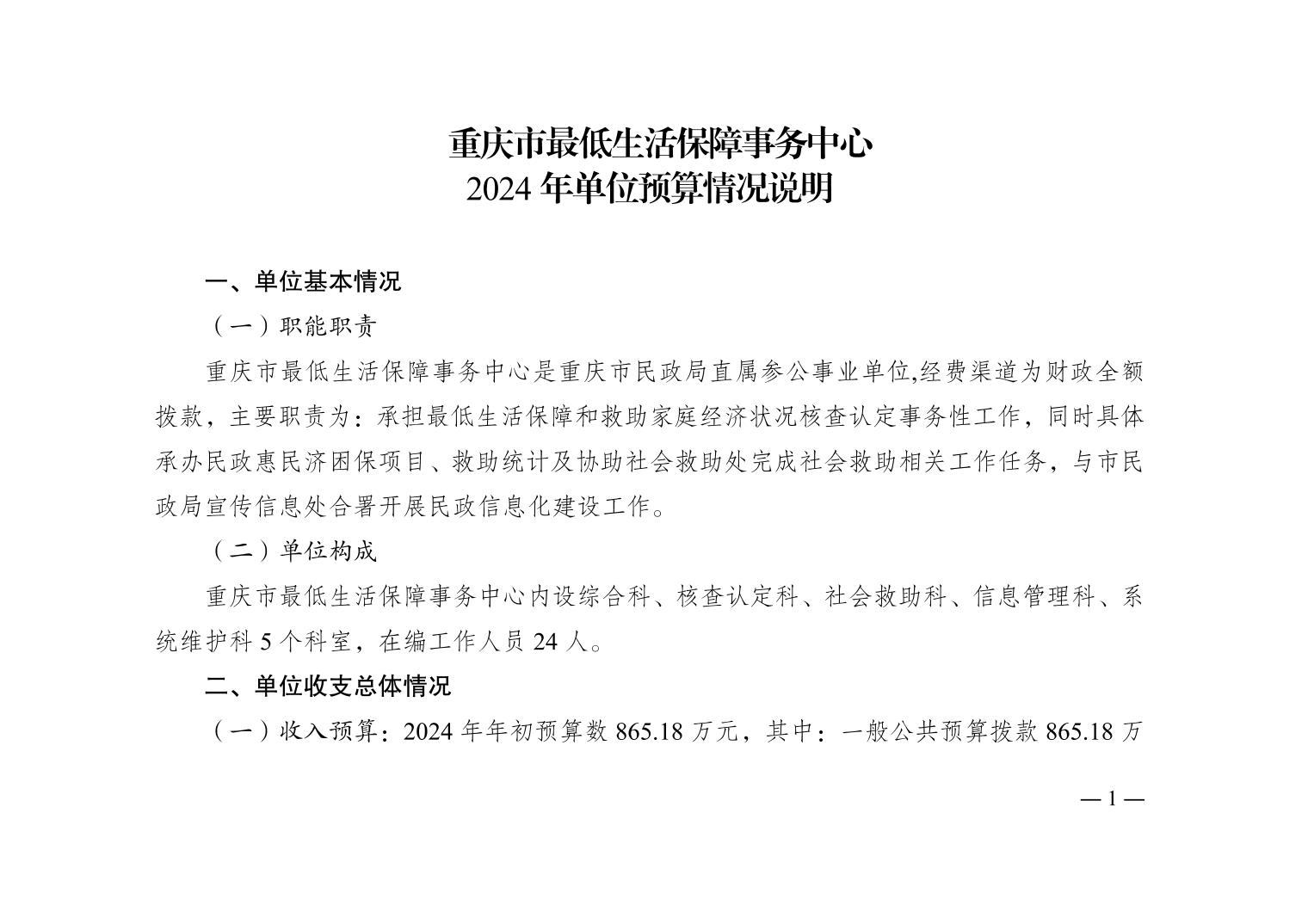 重庆市最低生活保障事务中心2024年单位预算情况说明_金沙娱乐城app