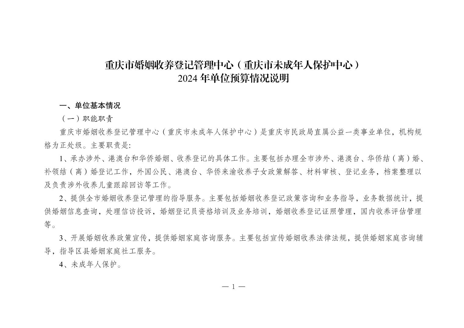 重庆市婚姻收养登记管理中心2024年单位预算情况说明_金沙娱乐城app