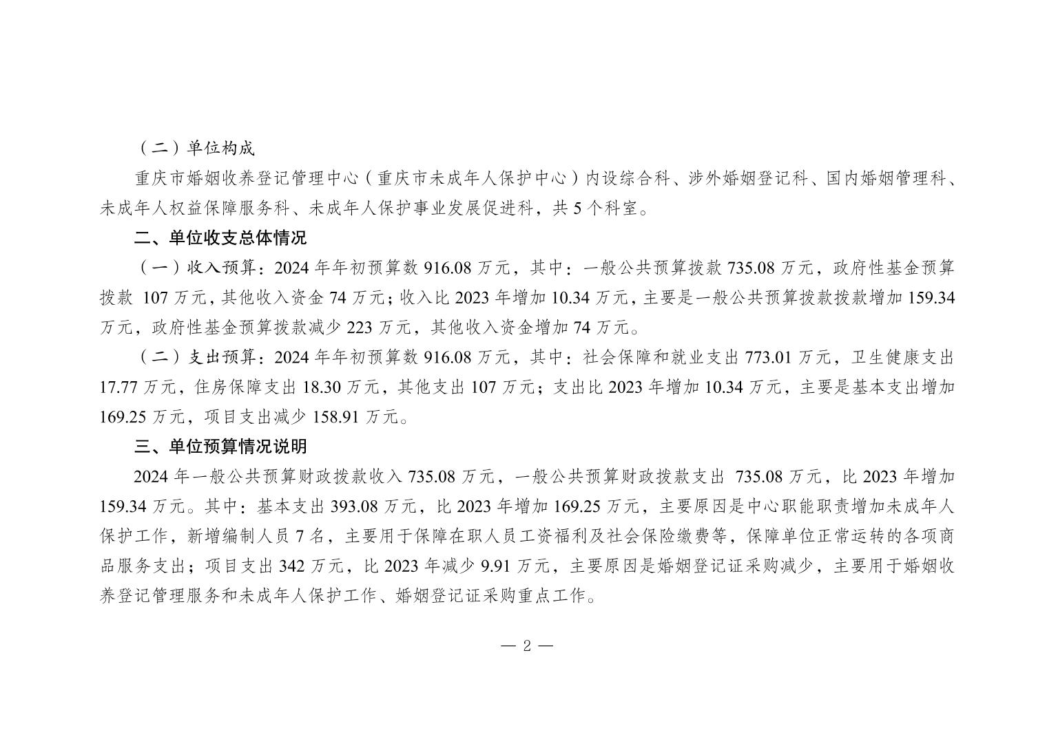 重庆市婚姻收养登记管理中心2024年单位预算情况说明