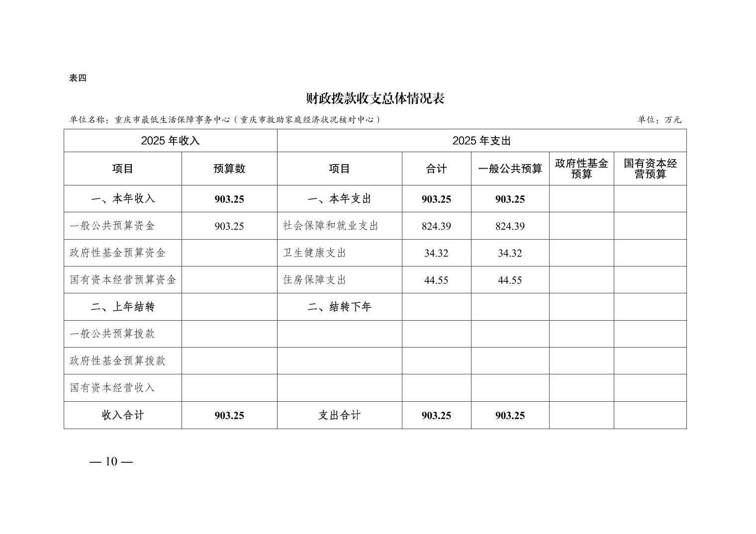 重庆市最低生活保障事务中心2025年单位预算情况说明