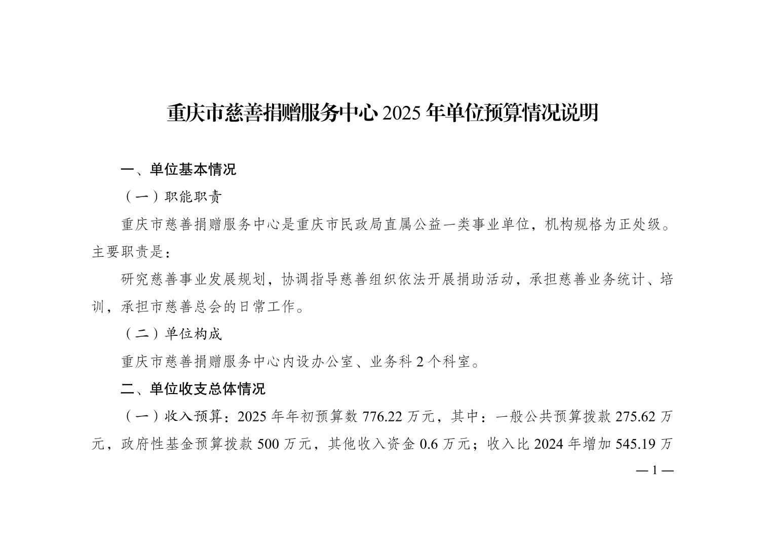- 重庆市慈善捐赠服务中心2025年单位预算情况说明