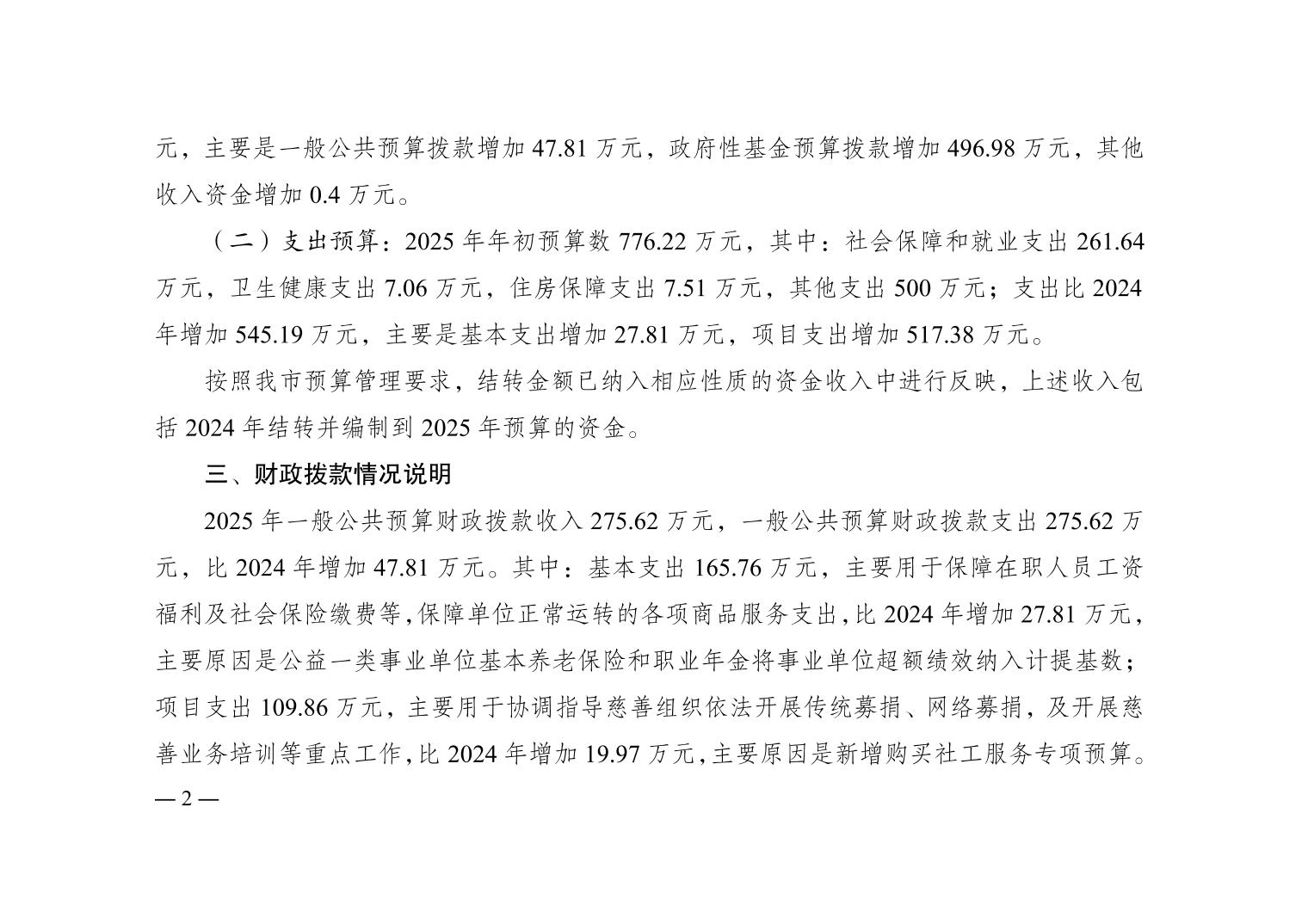 重庆市慈善捐赠服务中心2025年单位预算情况说明