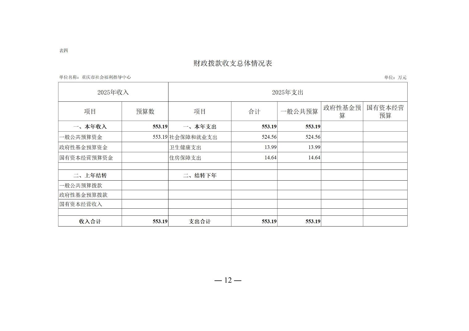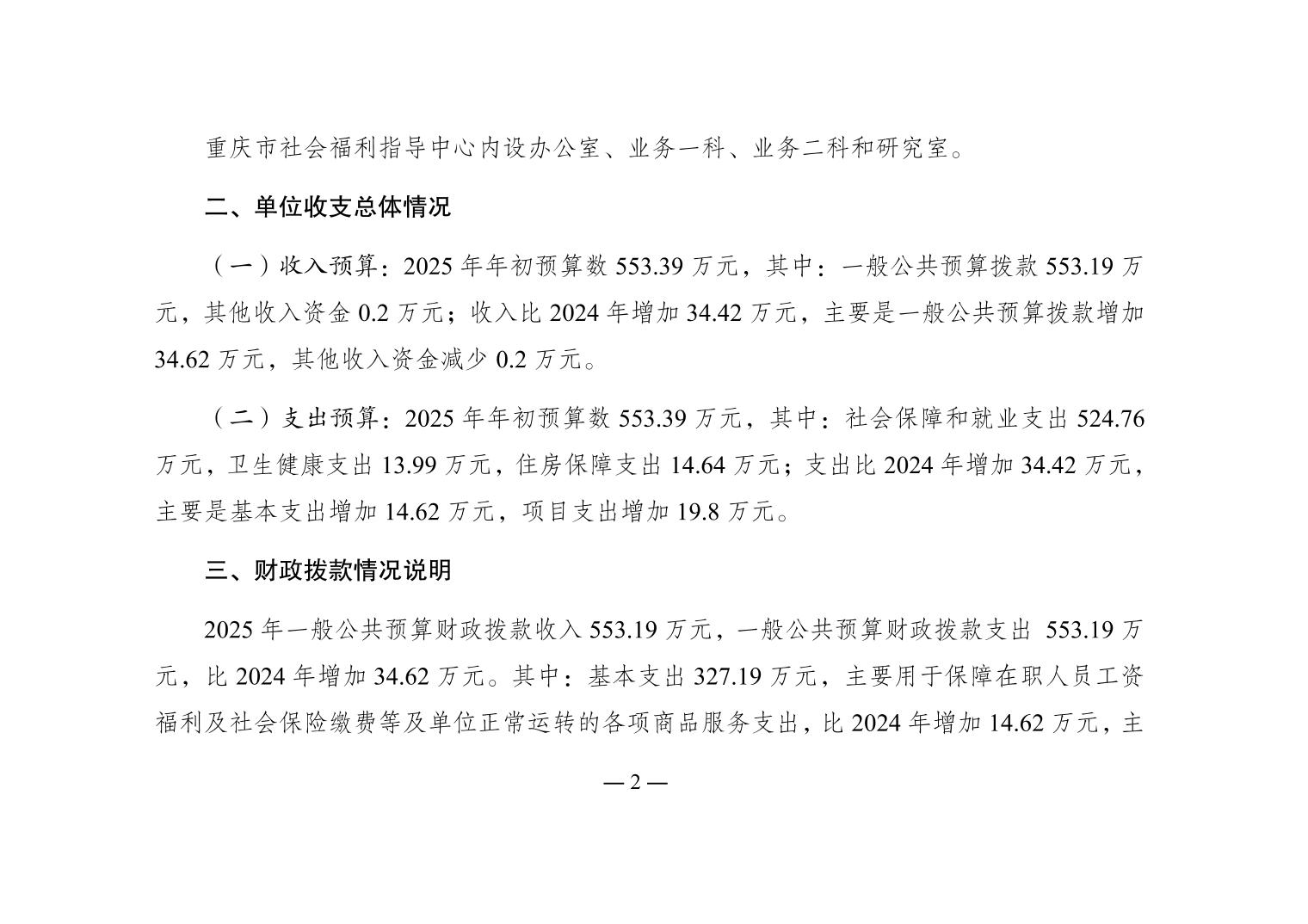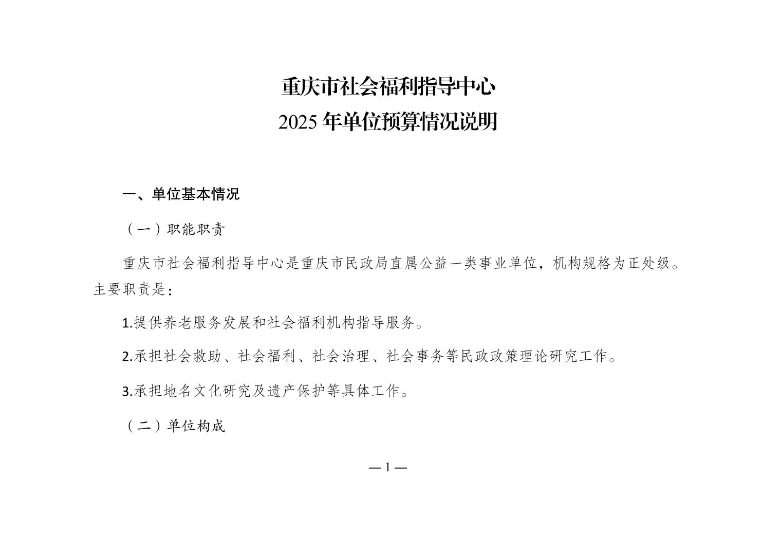 - 重庆市社会福利指导中心2025年单位预算情况说明